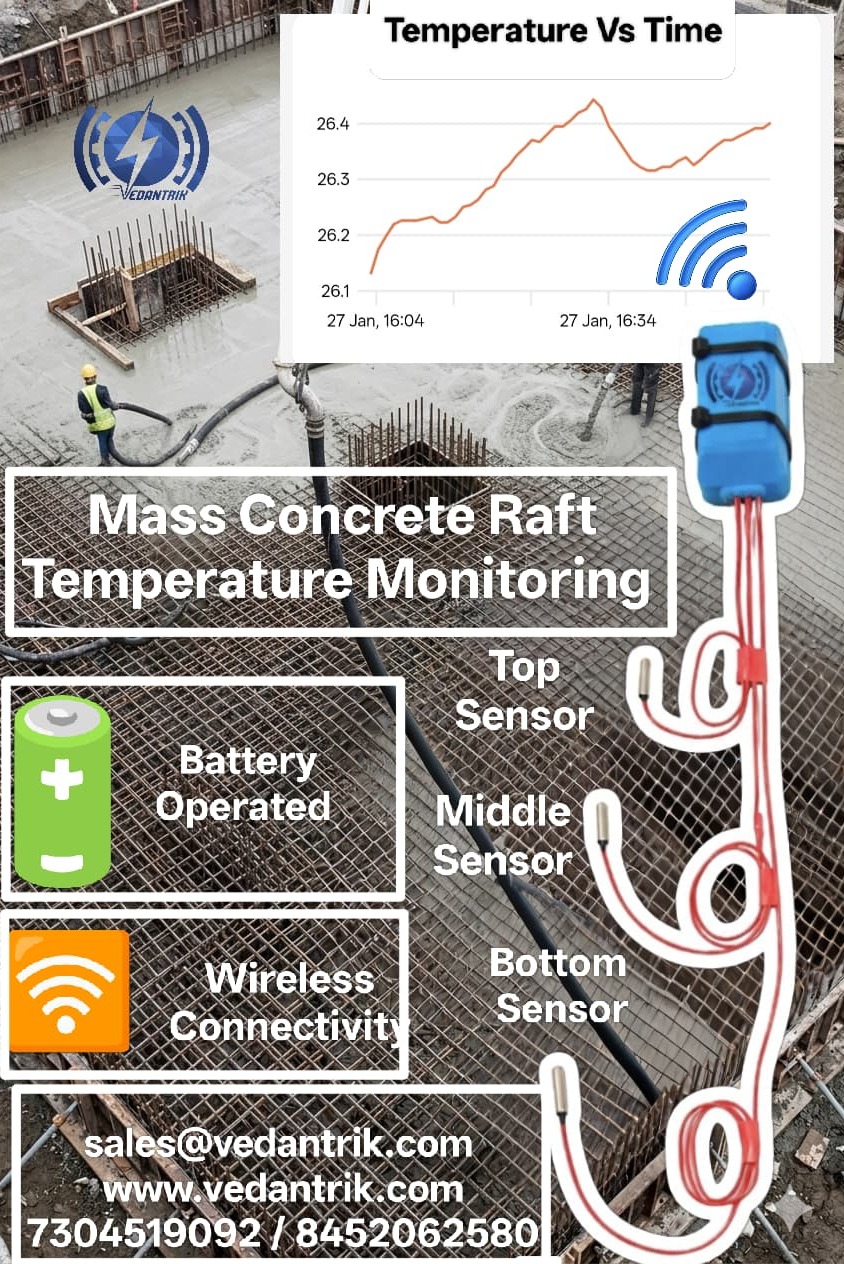 Wireless Mass Concrete Temperature Monitoring System with Concrete Maturity & Strength Monitoring